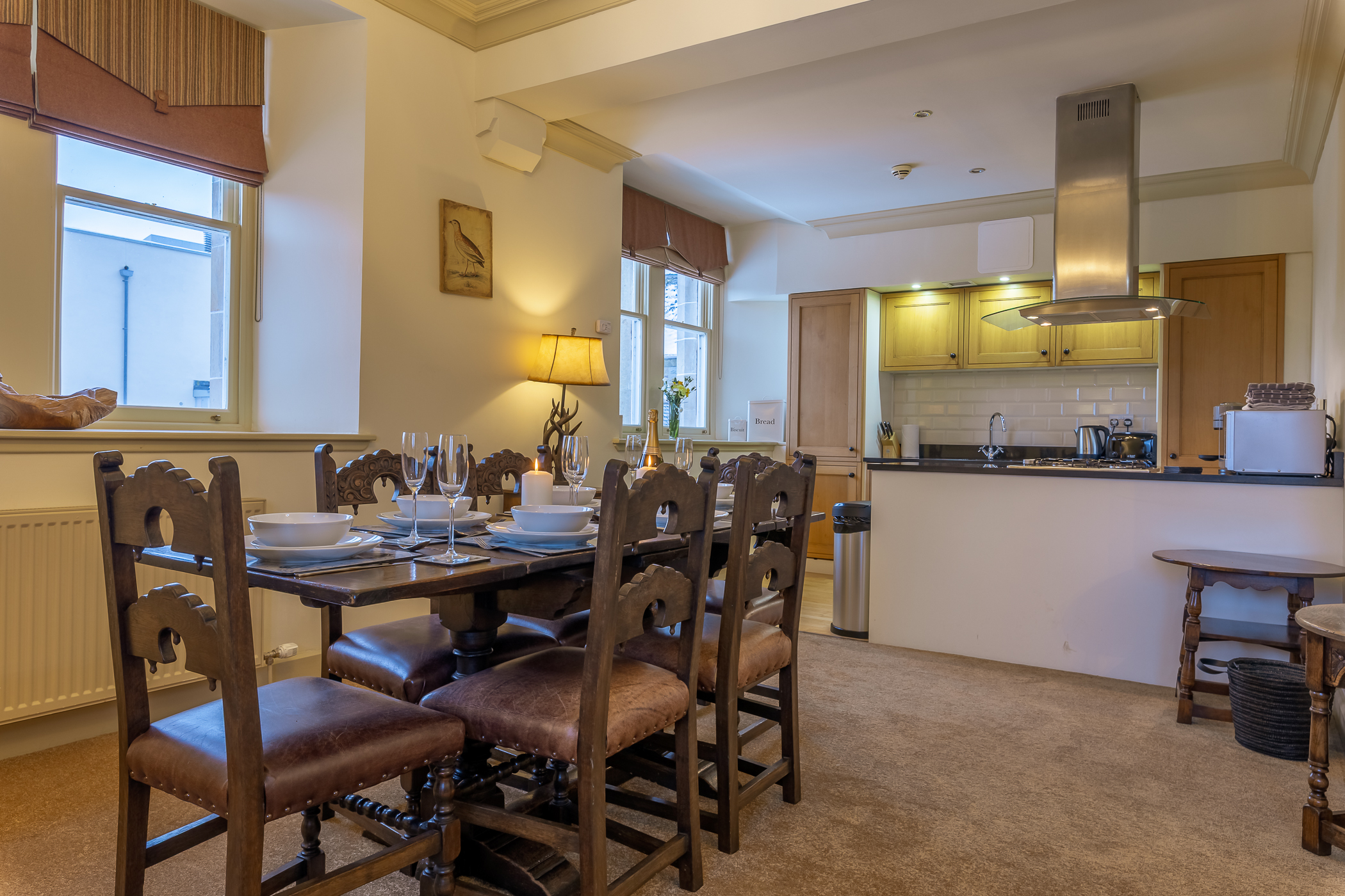 is open plan to the kitchen and can seat 6 people.