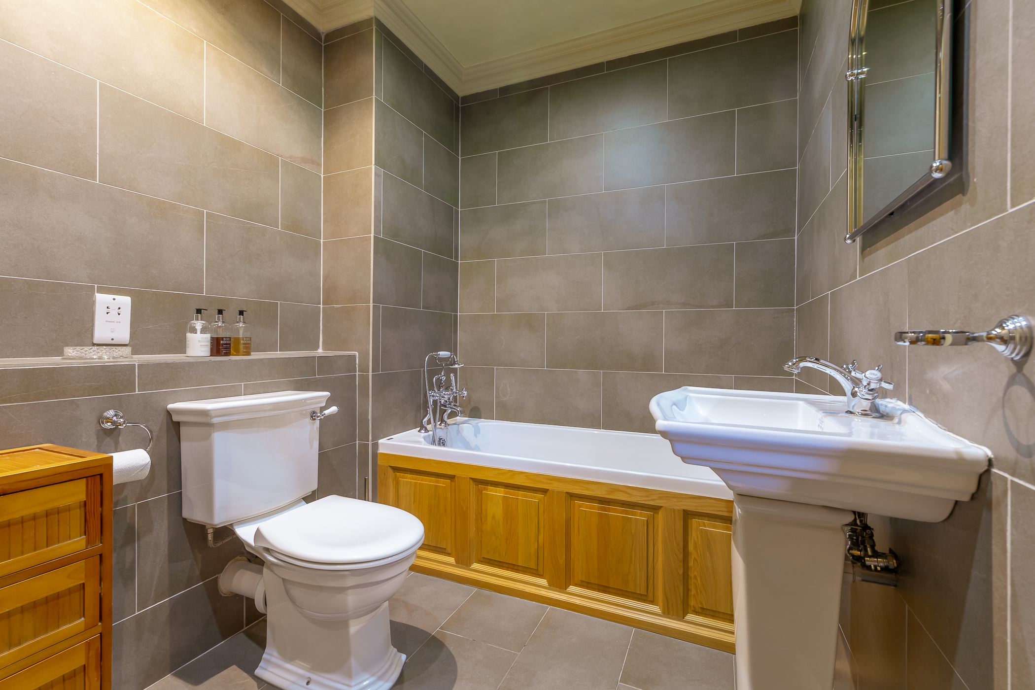 is fully tiled and has under floor heating. Both the en-suite and family shower room are equipped with quality bathroom fittings which give a luxurious feel to these rooms.