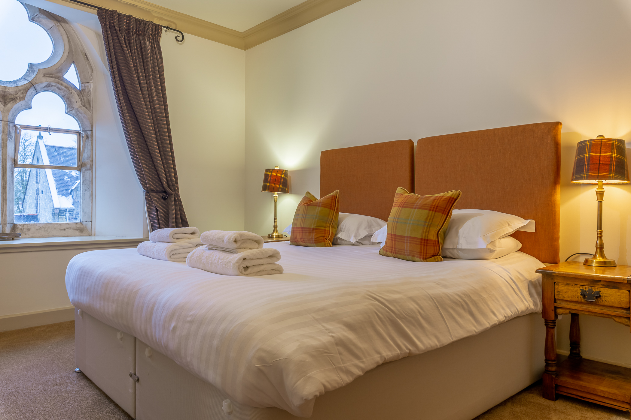 traditional furnishings include a super king size bed which also converts to twins.