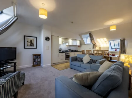 Monastery 17 Loch Ness holiday apartment is a two bedroom self catering holiday rental. It sits on the top floor in the roof of the beautiful Monastery Wing of the Highland Club.